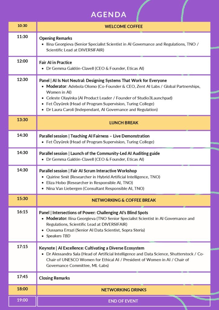 From the first coffee to the final networking drinks, the program brings together researchers, practitioners, and community voices to explore what fairness in AI looks like in practice, with perspectives from the project and what we can do differently.